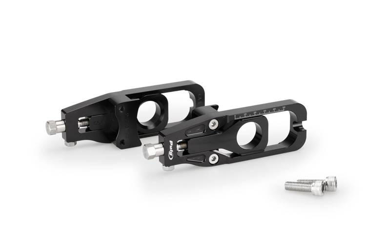 Napinacze PUIG umożliwiają precyzyjne ustawienie i kontrolę napięcia łańcucha. Zaznaczona skala ułatwia kontrolę.