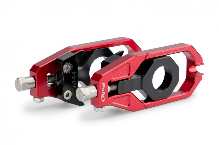 Napinacze PUIG umożliwiają precyzyjne ustawienie i kontrolę napięcia łańcucha. Zaznaczona skala ułatwia kontrolę.