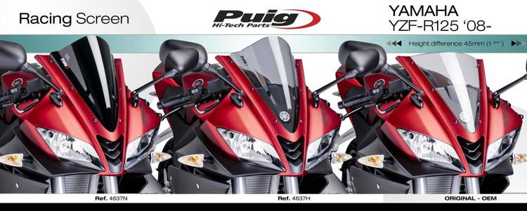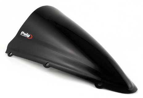 Sportowa szyba PUIG - z charakterystycznym, dodatkowym garbem w środkowej części poprawiającym aerodynamikę (double bubble, podwójny garb). Zaprojektowana w wirtualnym tunelu aerodynamicznym. Wysoka jakość optyczna (akryl). Mocowana w miejsce fabrycznej, za pomocą fabrycznych śrub. Posiada niemiecki atest TUV.