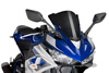 Sportowa szyba PUIG - z charakterystycznym, dodatkowym garbem w środkowej części poprawiającym aerodynamikę (double bubble, podwójny garb). Zaprojektowana w wirtualnym tunelu aerodynamicznym. Wysoka jakość optyczna (akryl). Mocowana w miejsce fabrycznej, za pomocą fabrycznych śrub. Posiada niemiecki atest TUV.
