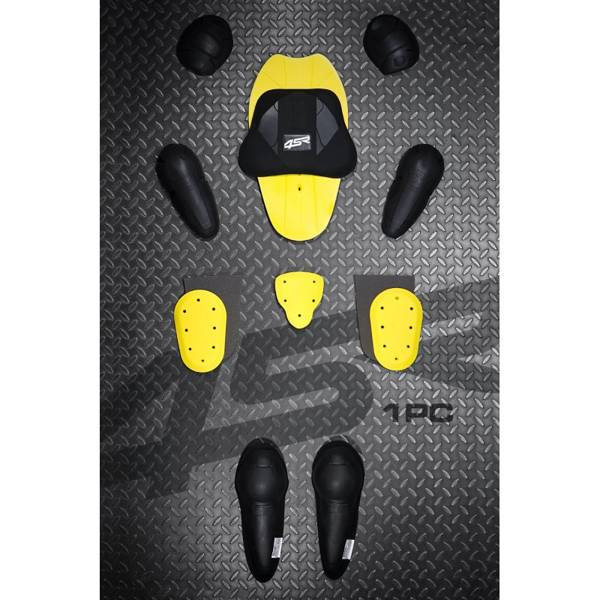 Jednoczęściowe kombinezony 4SR posiadają zestaw 18-stu ergonomicznie umieszczonych ochraniaczy i jest to największa ilość ochraniaczy w seryjnie produkowanych kombinezonach motocyklowych!