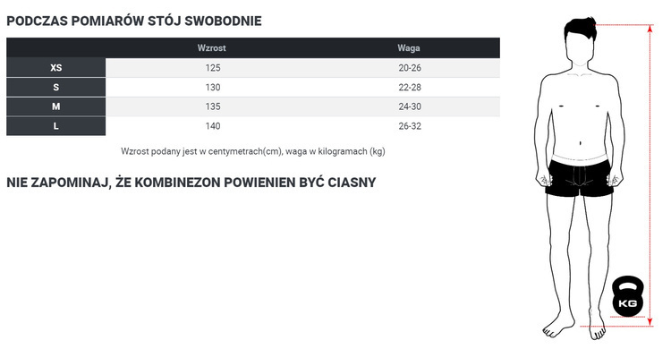 - kombinezon nie zawiera ochraniacza kręgosłupa i klatki piersiowej