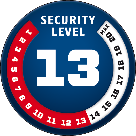 Zabezpiecza przed kradzieżą w miejscach o przeciętnym ryzyku.