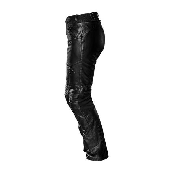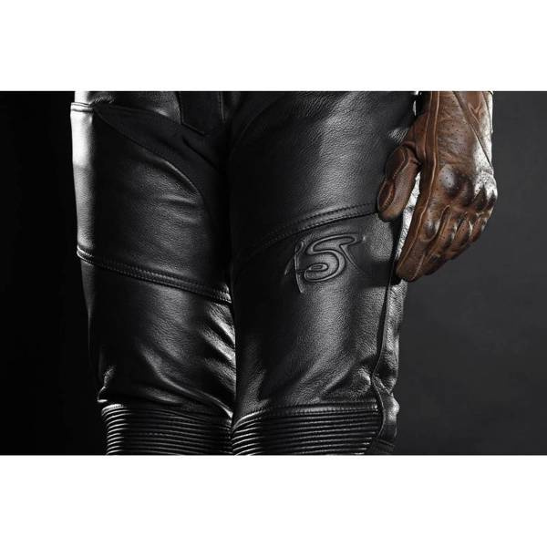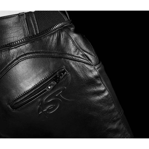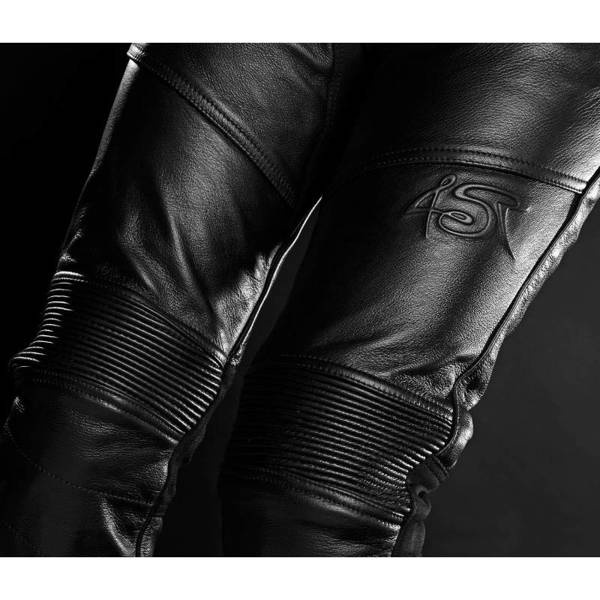 Ochraniacze kolanowe mają możliwość regulacji na wysokość dzięki czemu będą na właściwym miejscu. Ponadto zastosowano elastyczne panele nad kolanami, aby zapewnić komfort. Podobnie jak inne skórzane spodnie motocyklowe 4SR, są one również wyposażone w krótki i długi zamek błyskawiczny do połączenia z kurtką.