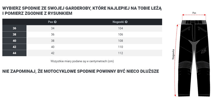 - spodnie motocyklowe można spiąć z kurtką 4SR krótkim lub obwodowym zamkiem