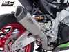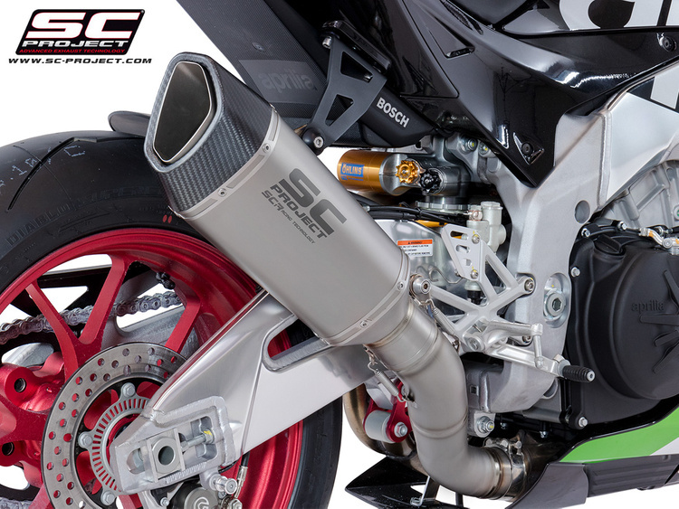 Tłumik SC1-R jest tworzony i rozwijany na podstawie doświadczeń działu wyścigów SC-Project w najważniejszych światowych zawodach. Wygląd z napiętymi i zdecydowanymi liniami wzbogaci Twoją Aprilię RSV4, czyniąc ją wyjątkową i ekskluzywną. Rura wylotowa uzyskana metodą hydroformowania oraz zaślepka z włókna węglowego o asymetrycznym romboidalnym kształcie sprawiają, że tłumik SC1-R jest niepowtarzalny. Lekki korpus zewnętrzny jest dostępny zarówno w wersji tytanowej, jak i karbonowej. Tłumik SC1-R zdobią spawy T.I.G., dźwiękochłonnym materiałem odpornym na bardzo wysokie temperatury oraz tuleje wkładki wykonane w obróbce CNC. W wersji z tytanowym korpusem dział badawczo-rozwojowy SC-Project chciał nadać SC1-R bardziej elegancki nadruk poprzez laserowe nadrukowanie logo bez zniekształcania wyglądu, podczas gdy w wersji karbonowej na tłumiku jest nitowana wkładka z SC -Logo projektu jak w wersjach naszych tłumików używanych na zawodach. W zestawie znajdują się uchwyty do montażu tłumika z kołkami pasażera lub bez.