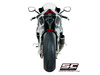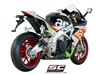 Tłumik CR-T jest niewątpliwym znakiem rozpoznawczym wyścigowego stylu SC-Project. Wielokrotny Mistrz Świata Moto2 został stworzony, aby zadowolić najlepsze Zespoły i Zawodników. Zaprojektowany i opracowany, aby nadać Twojej Aprilii RSV4 sportowy i wyścigowy charakter dzięki głębokiemu i ciemnemu dźwiękowi. Kultowy tłumik jest dostępny w wariantach Titanium lub Carbon z możliwością zamontowania osłony przed kamieniami z siatki tytanowej na rurze wylotowej. Aby osiągnąć najlepszą wydajność, CR-T jest zbudowany z materiałów pochodzących z przemysłu lotniczego, takich jak tytan lub włókno węglowe, z odpowiednią obróbką, aby wytrzymać najwyższe temperatury. Spawanie wsporników i montaż metodą T.I.G. technologia. Wszystkie tuleje wkładek są wykonane z tytanu, obrabianego z litego materiału na maszynach CNC, co gwarantuje nienaganne połączenia. W zestawie znajduje się obejma z włókna węglowego do montażu tłumika.