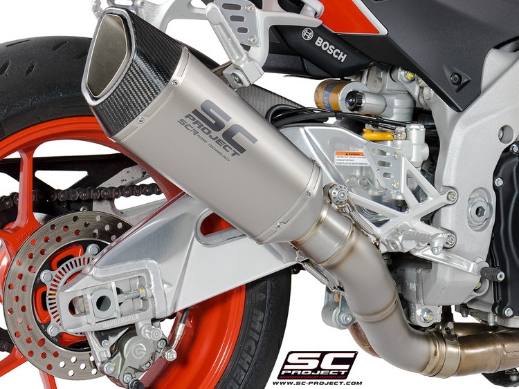 Tłumik SC1-R jest tworzony i rozwijany na podstawie doświadczeń działu wyścigów SC-Project w najważniejszych światowych zawodach. Wygląd z napiętymi i zdecydowanymi liniami wzbogaci Twoją Aprilię Tuono V4, czyniąc ją wyjątkową i ekskluzywną. Rura wylotowa uzyskana metodą hydroformowania oraz zaślepka z włókna węglowego o asymetrycznym romboidalnym kształcie sprawiają, że tłumik SC1-R jest niepowtarzalny. Lekki korpus zewnętrzny jest dostępny zarówno w wersji tytanowej, jak i karbonowej. Tłumik SC1-R zdobią spawy T.I.G., dźwiękochłonnym materiałem odpornym na bardzo wysokie temperatury oraz tuleje wkładki wykonane w obróbce CNC. W wersji z tytanowym korpusem dział badawczo-rozwojowy SC-Project chciał nadać SC1-R bardziej elegancki nadruk poprzez laserowe nadrukowanie logo bez zniekształcania wyglądu, podczas gdy w wersji karbonowej na tłumiku jest nitowana wkładka z SC -Logo projektu jak w wersjach naszych tłumików używanych na zawodach. W zestawie znajdują się uchwyty do montażu tłumika z kołkami pasażera lub bez.