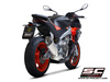 Aby nie rezygnować z wydajności i niepowtarzalnego dźwięku pełnego systemu „Trofeo” z tłumikiem SC1-R, dział badawczo-rozwojowy SC-Project opracował system zatwierdzony przez EURO 5 dla Twojej Aprilia Tuono 660.