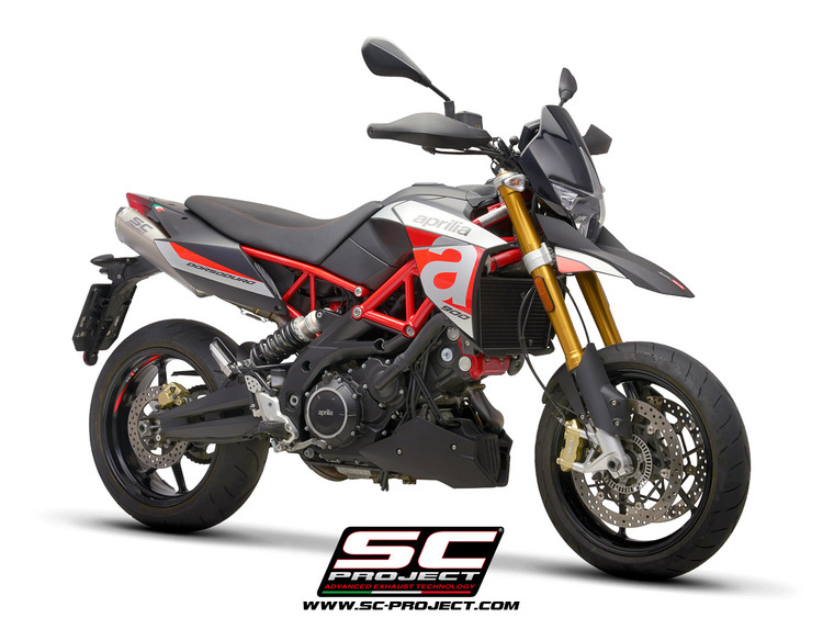 SC1-M, wywodzący się z kultowego tłumika SC1. Nowy SC1-M został opracowany przez dział badawczo-rozwojowy dla motocykli o średniej mocy. Krótka, kompaktowa i nowoczesna dla tych, którzy preferują minimalistyczne kształty. Nowa zaślepka z włókna węglowego Twill o zdecydowanym i mocnym charakterze dobrze dopasowuje się do kształtów Aprilia Dorsoduro 900. Metalowa część sekcji wyjściowej została zaprojektowana tak, aby lepiej współgrała ze sportowym designem zaślepki z włókna węglowego. Tłumik jest wyposażony w DB-killer i jego specyficzny system bloków. Tłumik posiada homologację EURO 4. Część zewnętrzna może być dostarczona zarówno w wersji Titanium, jak i Carbon. Zacisk mocujący do podwozia jest wykonany z malowanej stali nierdzewnej AISI 304.