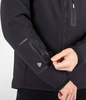 - Zewnętrzny softshell posiada membranę 10K, która odpowiada za wodoodporność i pozwala na oddychalność. Miękka tkanina zewnętrzna z laminowaną membraną jest dodatkowo podszyta przytulnym mikropolarem. Polar odprowadza parę wodną co z kolei wspomaga termoregulację, jednocześnie podnosząc komfort termiczny.