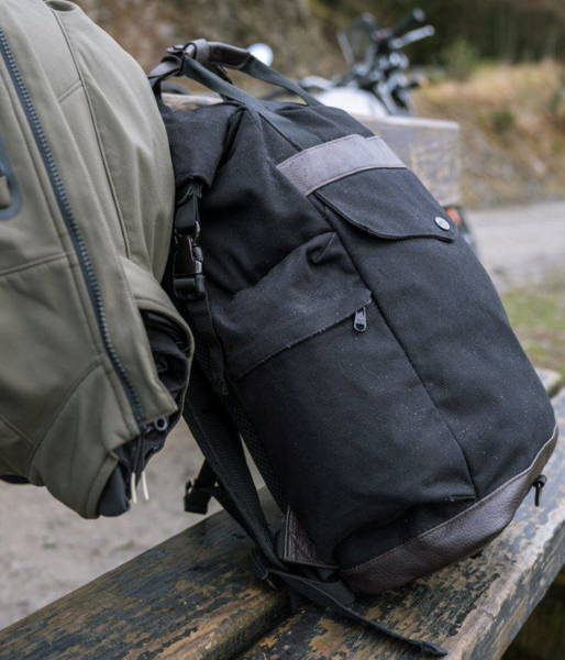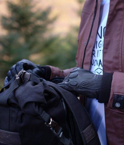 Ważne są detale jak np. zastosowanie zamków błyskawicznych YKK Aquaguard. Po obu stronach plecaka znajdują się dwie głębokie, wodoszczelne kieszenie z łatwym dostępem. W przedniej kieszeni znajduje się zintegrowany uchwyt na kask. Dwa panele piankowe umieszczone z tyłu plecaka zapewniają przepływ powietrza i komfort noszenia. Paski na ramiona są wyściełane, w pełni regulowane. Paski w talii i na klatce piersiowej uzupełniają dopasowanie. Podwójne uchwyty do noszenia doskonale sprawdzą się po zejściu z motocykla, dodatkowo posiadają taśmę umożliwiającą ich połączenie nad zamknięciem typu roll top. Trekker to już klasyka designu.
