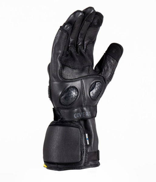 Wykonane z najwyższej jakości miękkiej, bydlęcej skóry Anilinowej oraz wytrzymałej skóry koziej na spodzie dłoni. W rękawicach Covert Mk3 zastosowano również opatentowane, niskoprofilowe ochraniacze Knox Scaphoid Protection System (SPS) na spodzie dłoni. Minimalizują one efekt „szarpnięcia”, który pojawia się w momencie, gdy dłoń motocyklisty styka się z drogą, co z kolei zmniejsza ryzyko nadmiernego ciągnięcia, które może być przyczyną złamania kości łódeczkowatej i grochowatej. Obszycie ze skóry bydlęcej na spodzie dłoni wokół SPS zapewnia dodatkową wytrzymałość i trwałość, podczas gdy knykcie są osłonięte miękkim ochraniaczem Micro-Lock. Strategicznie rozmieszczone 4 mm panele Micro-Lock na kciuku, wierzchu dłoni i nadgarstku po jego zewnętrznej stronie zwiększają odporność rękawic i absorbują uderzenia. Dzięki temu rękawice posiadają certyfikat CE zgodny z normą EN13594.