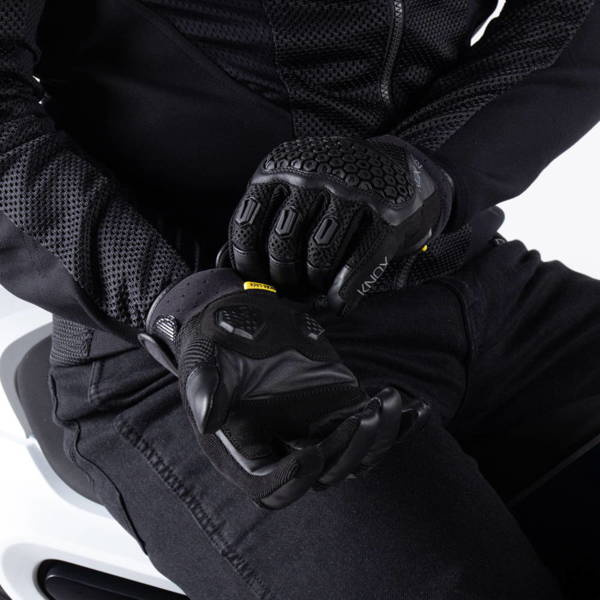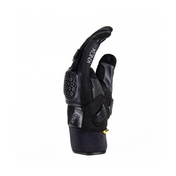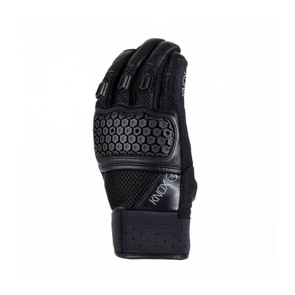 Materiał Amara został zastosowany zarówno na obu palcach wskazujących i kciukach aby sprawnie obsługiwać ekrany dotykowe jak i na dłoni celem zapewnienia precyzyjnego chwytu. System bezpiecznego zapięcia Knox Lift and Lock na obu mankietach zapewnia szybką i łatwą regulację. Dodatkowy komfort zapewnia bezszwowe, skórzane wykończenie na końcach palców. Skórzany pasek regulacyjny na nadgarstku jest połączony z perforowanym, miękkim i wytrzymałym mankietem z neoprenu. Rękawice są wykończone wytłoczonym logo Knox.