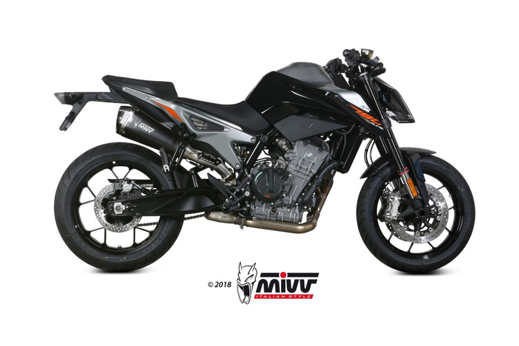 Układ wydechowy zdobi charakterystyczne logo Mivv, wykonane technologią laserową. Cechuje się on centralną częścią z czarnej stali nierdzewnej z efektem „Black Moon”, uzyskanym dzięki specjalnemu procesowi malowania na bazie ceramiki, który nadaje produktowi bardziej agresywny wygląd.