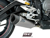 Asymetryczny, kanciasty i czysty romboidalny kształt, wraz z matową końcówką z włókna węglowego , przypomina sportowego ducha SC1-R, potwierdzając, że jest to idealny tłumik do najnowszych supersportowych motocykli.