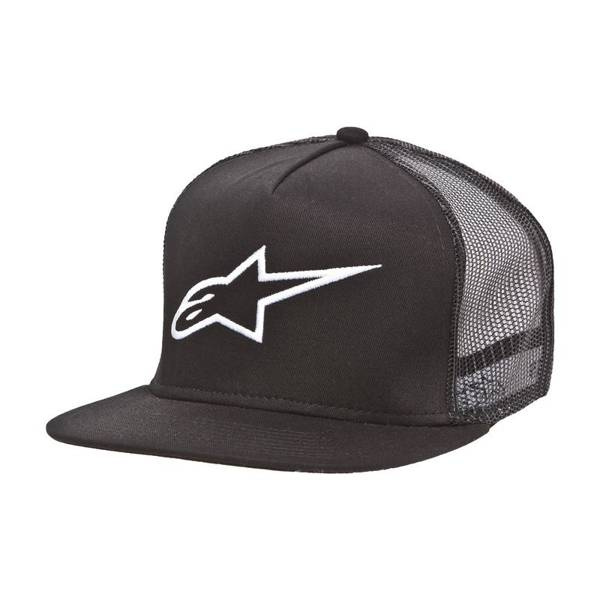 Alpinestars Corp Trucker to czapka z daszkiem typu snap back, z przodem wykonanym z twillu i tylną częścią z przewiewnego i wytrzymałego meshu. Na froncie znajduje się haftowane logo marki.