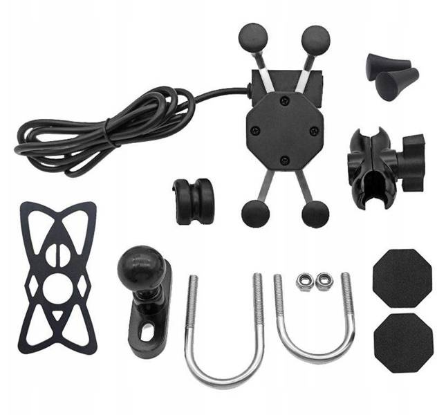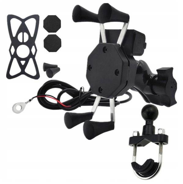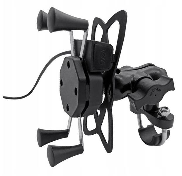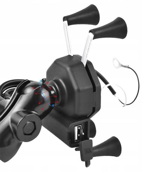 Uchwyt doposażony w niezależne gniazdo USB (5V 2A). Przyda się do ładowania telefonu, nawigacji interkomu motocyklowego, mp3, etc. Gniazdo USB dodatkowo posiada wyłącznik, dzięki któremu w każdej chwili możemy wyłączyć źródło ładowania. Ponadto zabezpieczone jest gumową „zatyczką” chroniącą go przed zalaniem.