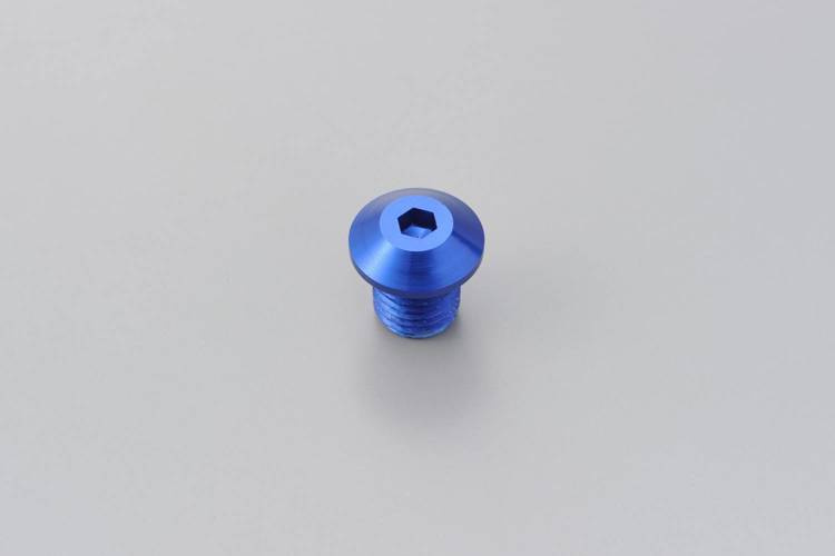 CNC mirror hole plug bolts with M10 x P1.25 right hand side thread in blue anodized.