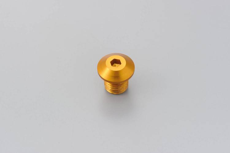 CNC mirror hole plug bolts with M10 x P1.25 right hand side thread in gold anodized.