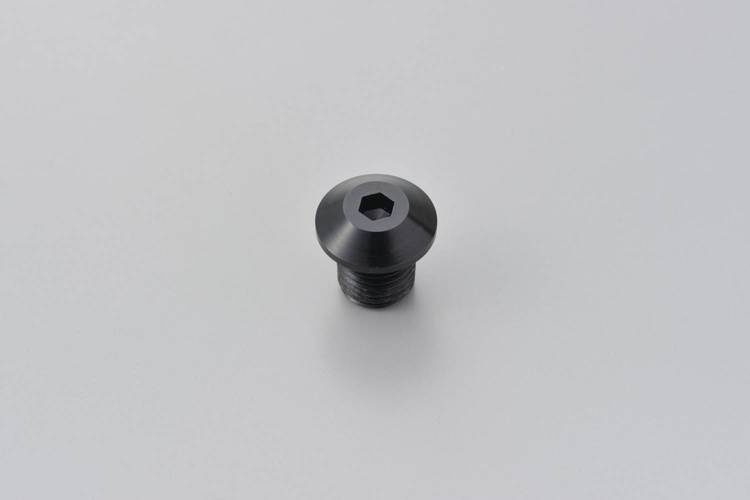 CNC mirror hole plug bolts with M10 x P1.25 right hand side thread in black anodized.