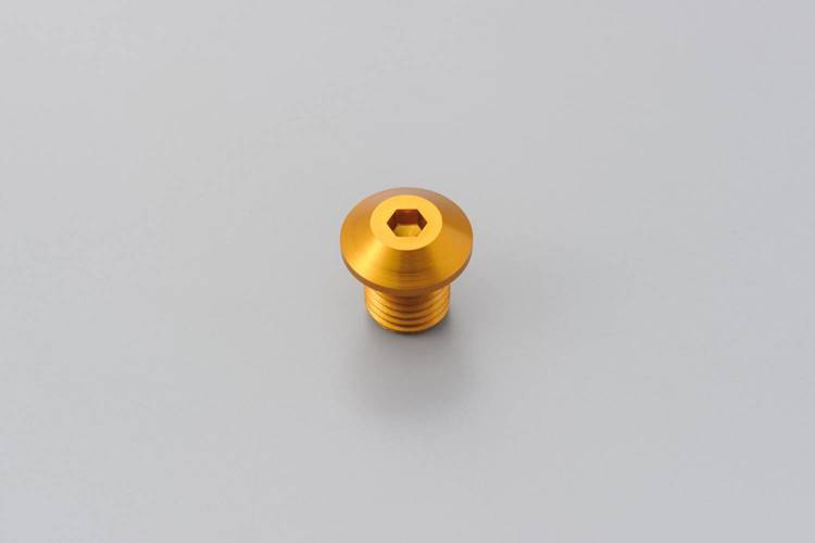 CNC mirror hole plug bolts with M10 x P1.25 left hand side thread in gold anodized.