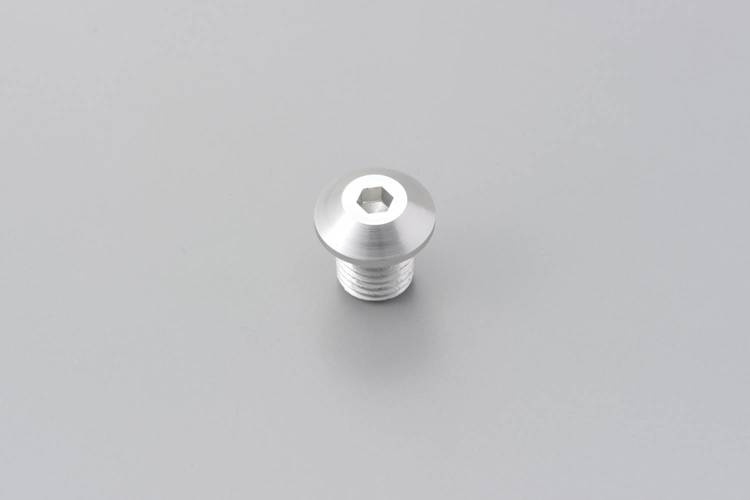CNC mirror hole plug bolts with M10 x P1.25 left hand side thread in silver anodized.