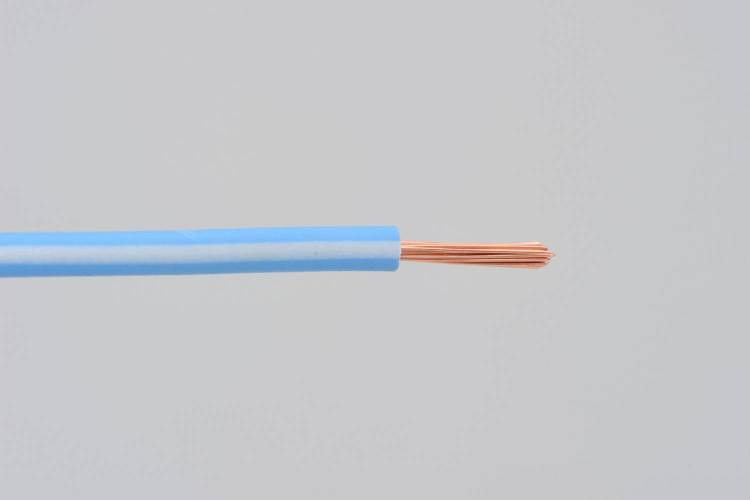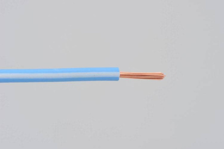 2 meters colored wire in lightblue/white with AWG18 / AVS0.75sq. Allowed current 14A (40°C)