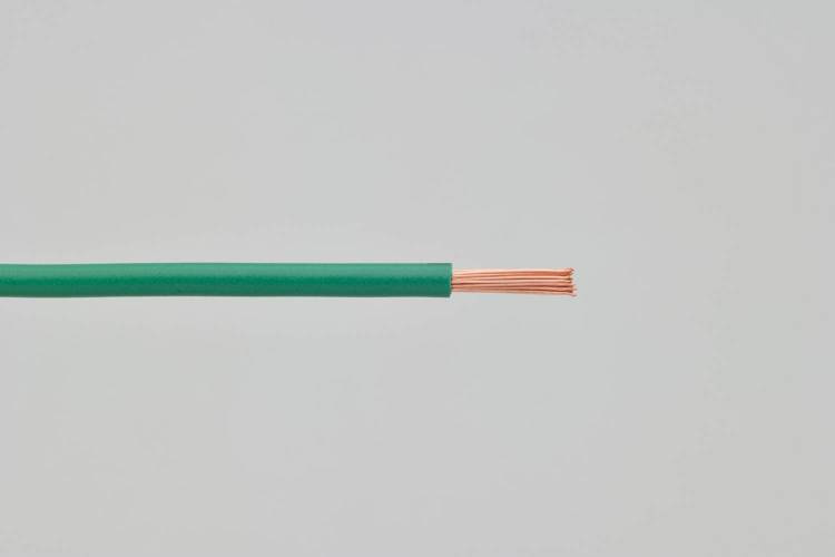 1 meter colored wire in green with AWG14 / AVS2.00sq. Allowed current 26A (40°C)