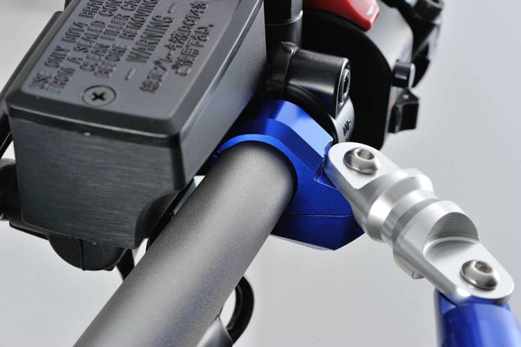 Alloy clamp set in blue anodized for handlebar braces. Fits to handlebars with 22.2 mm outer diameter.