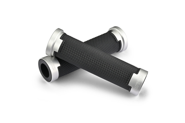 Grips with black rubber & silver aluminum rings.