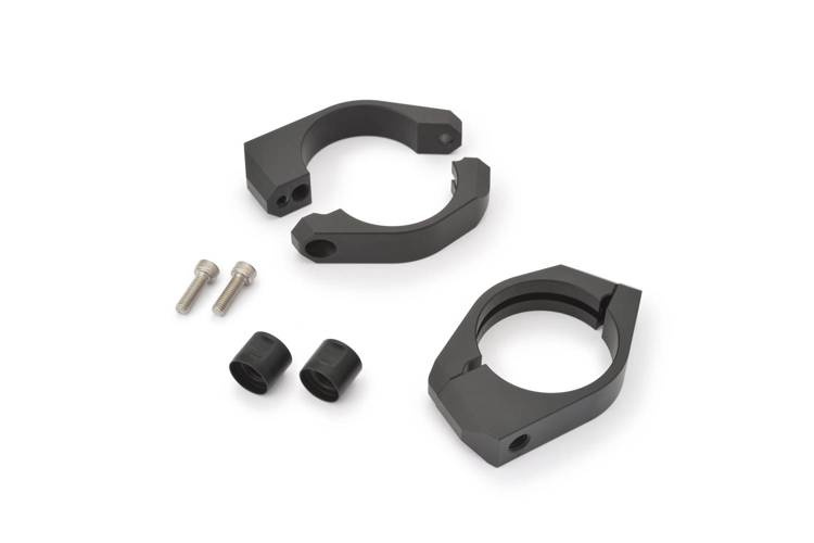 ALUMINUM FORK CLAMP SET(2PCS) DIA.47 FOR INDICATOR MOUNT 2pcs/set - For dia.47 fork - Material: ALUMINUM - Inside groove for hidden wiring