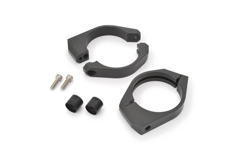 ALUMINUM FORK CLAMP SET(2PCS) DIA.59 FOR INDICATOR MOUNT 2pcs/set - For dia.59 fork - Material: ALUMINUM - Inside groove for hidden wiring