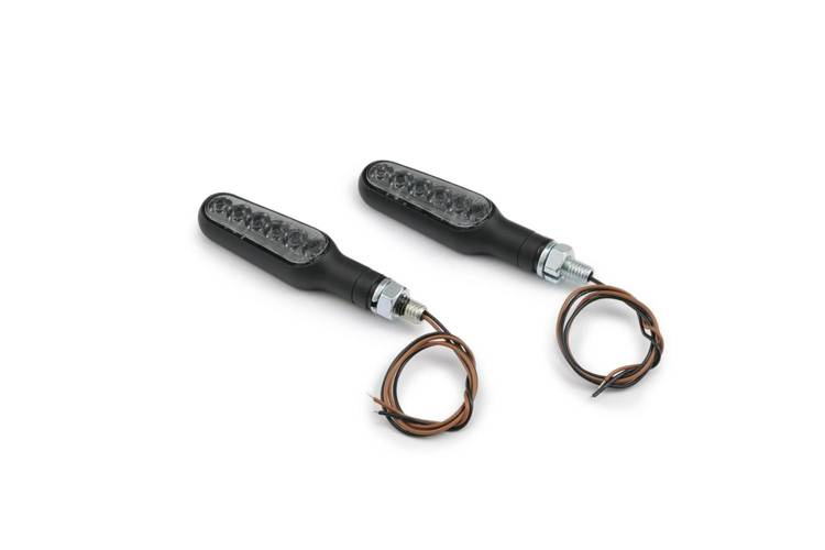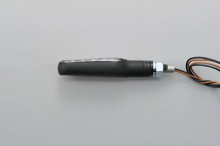 D-LIGHT "STELLAR" SEQUENTIAL LED INDICATOR 2PCS Sequential LED direction indicator for motorcycles, created by reliable Japanese technology. Body is casted aluminum and the lighting flows like a shooting star, STELLAR makes your bike sophisticated and modern. ECE approved as front and rear direction indicator. Made in Japan Alloy housing Surface silver Lens clear Modern sequential LED technology Vibration damping integrated E-marked for front and rear easy mount with M8 thread Pair / 2 indicator For DC12V power / Will not work for 6V / AC12V