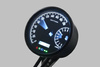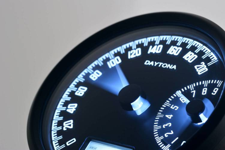 VELONA-W SPEEDOMETER 200KM/H & 9000RPM, 80MM W/INDICATORS * Black with white letters and white LED back light * Stainless steel housing (dia. 80mm, max height 51mm) * Speed unit selectable from km/h (0-200) or MPH (0-200) * Odometer range : 0-99,999 km(mile) * Dual trip odometer range : 0-9,999.9 km(mile) * RPM meter range : 0-9,000 RPM * Control lights for turn signal left and right, high beam, neutral and warning * V-shaped bracket included * E-marked (ECE-R10)