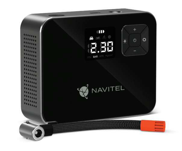 NAVITEL AIR 15 AL to akumulatorowy kompresor powietrza z automatycznym regulatorem ciśnienia, cyfrowym manometrem i wyświetlaczem LCD. AIR 15 AL pozwala bez kłopotu napompować koła motocykla, samochodu, roweru, piłkę lub zabawkę do pływania. Dzięki wbudowanemu akumulatorowi Li-ion o pojemności 2000 mAh kompresor działa autonomicznie - bez konieczności podłączenia do gniazdka elektrycznego czy sieci pokładowej pojazdu.