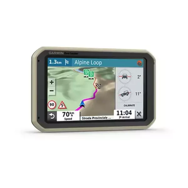 - Overlander zapewnia zintegrowane dane o kątach nachylenia i przechyłu pojazdu, które ułatwiają poruszanie się po trudnym terenie.