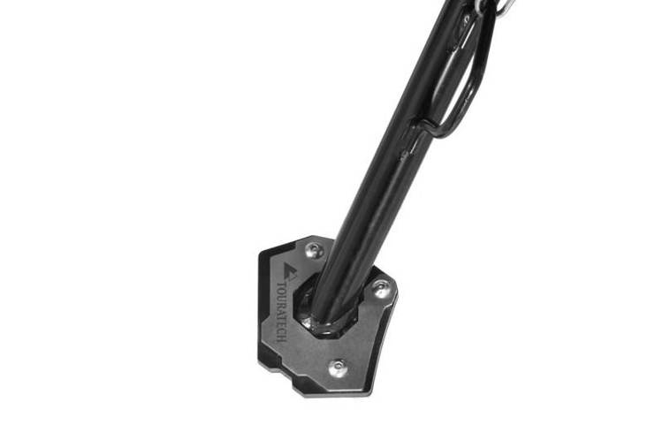 To znany problem, który wystawił na próbę temperament wielu motocyklistów. Po jeździe motocyklem po kamienistych, wyboistych trasach chcesz po prostu zatrzymać się na odpoczynek. Ale łatwiej powiedzieć niż to zrobić. Zaparkowanie motocykla na miękkim podłożu może być prawdziwym problemem! Zazwyczaj nie możesz znaleźć drewnianej deski lub czegoś podobnego, na czym mógłbyś postawić motocykl, gdy tego potrzebujesz.Touratech ma rozwiązanie: poszerzenie podstawy podpórki bocznej ponad dwukrotnie zwiększa powierzchnię podparcia, więc nie będziesz musiał się męczyć z podnoszeniem w pełni obciążonej maszyny. Mieszanka stali nierdzewnej i anodowanego na czarno aluminium zapewnia estetyczny wygląd i pełną stabilność. Bezpiecznie przymocowane poszerzenie do stopki bocznej przydatnym akcesorium, które zawsze jest pod ręką, aby zaoszczędzić Ci wiele kłopotów i frustracji.Nie pasuje do motocykli z obniżonym zawieszeniem.