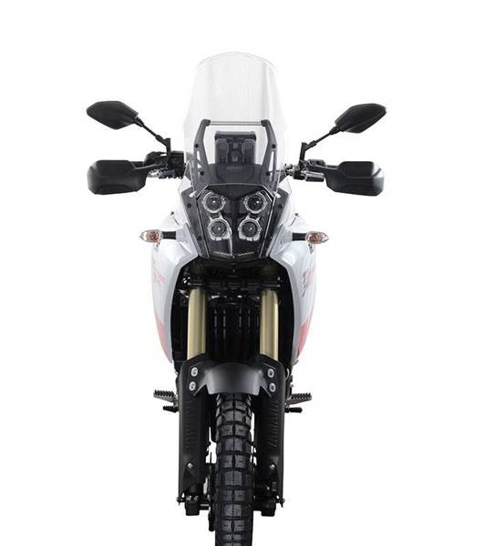 With its 204 kg, the slim waisted and high Ténéré is light-weight, has a wonderfully smooth steering behaviour and is fun as a travelling companion and as a sports friend. The 40 cm long MRA touring windscreen (TM) offers good wind protection in every situation. No separate installation material required - simply reuse the original screws for installation. The touring windscreen is colourless.Length in mm: 400 (=OEM+100mm)Width in mm: 300with ABE