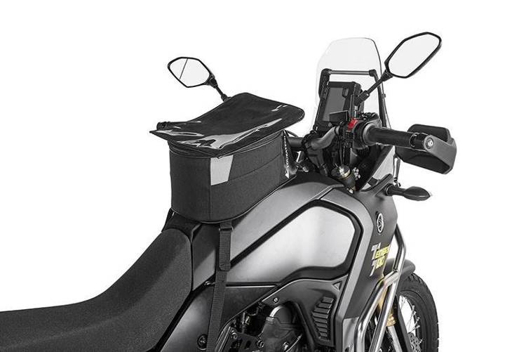 This minimalist tank bag is a practical, well thought out piece of equipment that represents outstanding value for money.Flatter in shape and with fewer adornments, this model is suitable for all kinds of uses. For instance, it provides enough space for a day trip, can hold documents, a mobile phone, wallet and drinks on the way to a city sightseeing tour, and is also the preferred choice for off-road riding as it doesn't restrict the rider's movements while standing or affect the bike's handling.- Vehicle-specific, precisely fitting base plate for secure, play-free attachment to the bike- Certified Cordura fabric, made in Germany- Waterproof coating on inside of fabric - Fluorocarbon impregnation and Teflon coating by DuPont using nanotechnology for protection against moisture, dirt, oil and fading- Washable and easy to clean- Reflective 3M Scotchlite panels for maximum visibility- Strong carry handle for practical transportation away from the bike- Made for extreme loads and built to last - Securely attached but can be quickly taken off the bike- Map pocket with Velcro fastener and large opening included- High-quality zipsPlease note: Use paint protection film if necessary! (Item number 01-101-0100-0)Size: (L x W x H) approx. ca. 30 x 15 x 19 cmVolume: approx. 7 litres