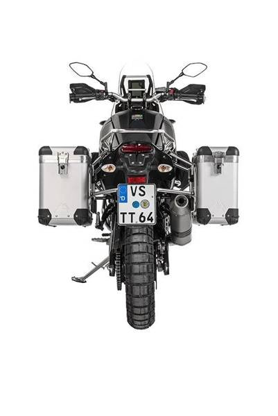 The aluminium pannier system again has a very robust construction. We have tried to bring the pannier racks and the panniers as close as possible to the motorcycle. Numerous tests have already been performed in order to ensure that the entire development satisfies the required demands.- ready fitted fixing kits- sturdy connecting bar- original indicators can be re-used- Stainless steel rackPannier system:Robust stainless steel pannier frame made from 18mm diameter steel tube with a 2mm thick wall. Bolted crosspiece for better rigidity. Mounting easy to fit. Uses standard mounting points. No modifications to rear footrests. Mounting bolts are included.ZEGA Pro:In a modern design and state-of-the-art construction, our developers have come up with a veritable masterpiece in the ZEGA Pro.Light and yet sturdy, the case is available in a 31, 38 and 45 litre version, made entirely of 1.5-mm aluminium, water- and dust-proof, and manufactured to the highest standards - no way were we going to settle for a basic plastic construction that was simply jazzed up with a few bits of moulded aluminium!The lid and base of the ZEGA Pro are welded, which achieves the maximum rigidity of the connections, and the base and outer shell have high quality rivets (no cheap studs for us - or you!). You'll find no leaky welded seams along the edges. High quality silicone seals ensure that the contents of this case are protected as well as possible.The highly robust protective strip along the car case is screwed on, and so is easily replaced when necessary - perhaps after a fall. The same applies to the strong protective corners on the lid, which comes off completely or can be opened just from one side - the catches double as hinges.The ZEGA Pro appeals not only for its technology and workmanship, but also for the many clever detail solutions and the modern protected design - the rounded lines of the item really do catch the eye. Thus, for instance, a clever handle can be added to the lid. The four attachment eyes rise only slightly above the surface of the case, so it also makes an ideal seat.Some of the other benefits of the ZEGA Pro are that it is easy to open to retrieve a luggage roll and our extensive range of accessories. The clever touches of the ZEGA Pro include the ingenious lock system, which is strong and reliable yet easy to operate.The advantages at a glance:- automatic locking prevents the catches from opening accidentally- fitted locks can be replaced or added later without drilling or filing- simultaneously locking fitted locks are available at no extra charge; also available with simultaneous locking with navigation brackets and oil plugs.