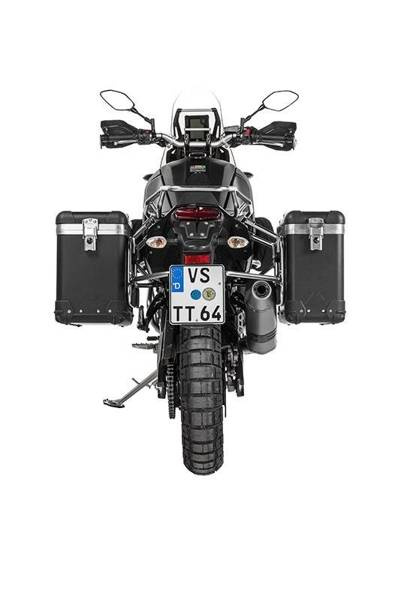The aluminium pannier system again has a very robust construction. We have tried to bring the pannier racks and the panniers as close as possible to the motorcycle. Numerous tests have already been performed in order to ensure that the entire development satisfies the required demands.- ready fitted fixing kits- sturdy connecting bar- original indicators can be re-used- Stainless steel rackPannier system:Robust stainless steel pannier frame made from 18mm diameter steel tube with a 2mm thick wall. Bolted crosspiece for better rigidity. Mounting easy to fit. Uses standard mounting points. No modifications to rear footrests. Mounting bolts are included.ZEGA Pro:In a modern design and state-of-the-art construction, our developers have come up with a veritable masterpiece in the ZEGA Pro.Light and yet sturdy, the case is available in a 31, 38 and 45 litre version, made entirely of 1.5-mm aluminium, water- and dust-proof, and manufactured to the highest standards - no way were we going to settle for a basic plastic construction that was simply jazzed up with a few bits of moulded aluminium!The lid and base of the ZEGA Pro are welded, which achieves the maximum rigidity of the connections, and the base and outer shell have high quality rivets (no cheap studs for us - or you!). You'll find no leaky welded seams along the edges. High quality silicone seals ensure that the contents of this case are protected as well as possible.The highly robust protective strip along the car case is screwed on, and so is easily replaced when necessary - perhaps after a fall. The same applies to the strong protective corners on the lid, which comes off completely or can be opened just from one side - the catches double as hinges.The ZEGA Pro appeals not only for its technology and workmanship, but also for the many clever detail solutions and the modern protected design - the rounded lines of the item really do catch the eye. Thus, for instance, a clever handle can be added to the lid. The four attachment eyes rise only slightly above the surface of the case, so it also makes an ideal seat.Some of the other benefits of the ZEGA Pro are that it is easy to open to retrieve a luggage roll and our extensive range of accessories. The clever touches of the ZEGA Pro include the ingenious lock system, which is strong and reliable yet easy to operate.The advantages at a glance:- automatic locking prevents the catches from opening accidentally- fitted locks can be replaced or added later without drilling or filing- simultaneously locking fitted locks are available at no extra charge; also available with simultaneous locking with navigation brackets and oil plugs.