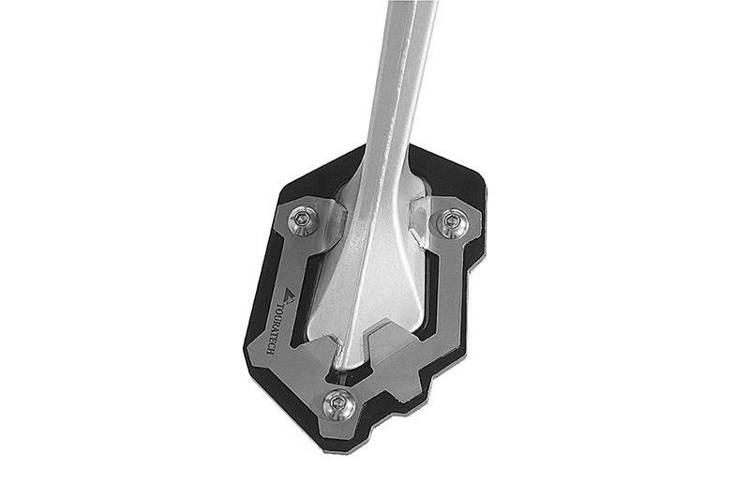 Poszerzenie podstawy stopki bocznej Touratech dla Triumph Tiger 800 ponad dwukrotnie zwiększa powierzchnię podparcia. Dzięki temu Tiger jest znacznie bardziej stabilny na miękkim podłożu.Elementy ze stali nierdzewnej i anodyzowanego aluminium nadają poszerzeniu podstawy atrakcyjny wygląd. Bez tego produktu Twoje turystyczne enduro naprawdę nie może wyruszyć w trasę!Nie nadaje się do łączenia z podstawką główną.