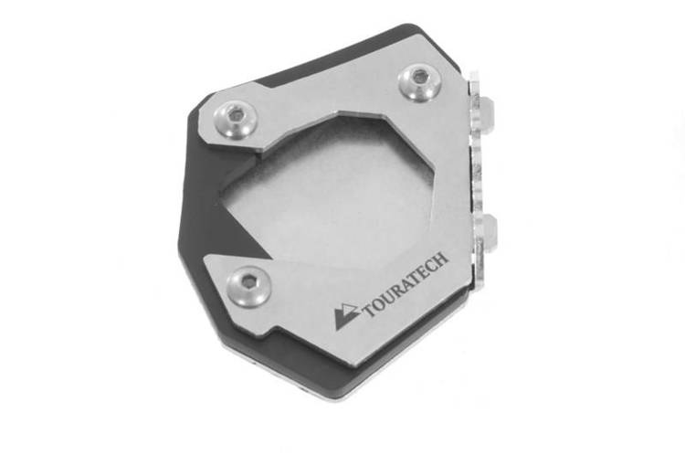 To znany problem, który wystawił na próbę temperament wielu motocyklistów. Po jeździe motocyklem po kamienistych, wyboistych trasach  chcesz po prostu zatrzymać się na odpoczynek. Ale łatwiej powiedzieć niż to zrobić. Zaparkowanie motocykla na miękkim podłożu może być prawdziwym problemem! Zazwyczaj nie możesz znaleźć drewnianej deski lub czegoś podobnego, na czym mógłbyś postawić motocykl, gdy tego potrzebujesz.Touratech ma rozwiązanie: poszerzenie podstawy podpórki bocznej ponad dwukrotnie zwiększa powierzchnię podparcia, więc nie będziesz musiał się męczyć z podnoszeniem w pełni obciążonej maszyny. Mieszanka stali nierdzewnej i anodowanego na czarno aluminium zapewnia estetyczny wygląd i pełną stabilność. Bezpiecznie przymocowane poszerzenie do stopki bocznej przydatnym akcesorium, które zawsze jest pod ręką, aby zaoszczędzić Ci wiele kłopotów i frustracji.