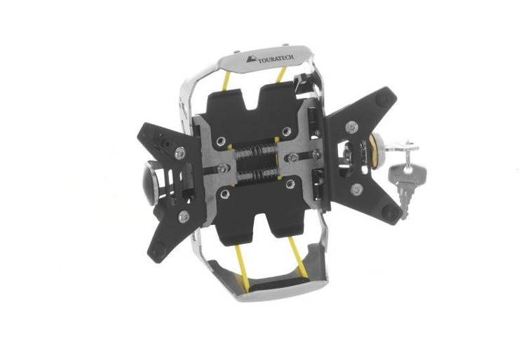 Uchwyt Touratech nawigacji Zumo 590 / 595 LM jest jak dłoń, która zamyka się bezpiecznie wokół Zumo, aby go utrzymać i chronić. Nasi projektanci wykorzystali swoją pomysłowość i zaawansowaną wiedzę techniczną do zaprojektowania tego zamykanego uchwytu na kierownicę, który blokuje się i odblokowuje szybko i z łatwością. Stacja dokująca nawigacji Zumo 590 / 595 jest zintegrowana z uchwytem Touratech. Najpierw należy włożyć urządzenie Garmin Zumo do uchwytu, a następnie podłączyć je do wbudowanego zasilacza Garmin. Następnie popchnij sprężynowe skrzydełka blokujące i poczuj, jak pewnie zatrzaskują się na swoim miejscu. Teraz możesz zablokować uchwyt za pomocą zintegrowanego zamka bębenkowego. Uchwyt został zaprojektowany w taki sposób, aby umożliwić włączanie i wyłączanie systemu, gdy jest on zablokowany. Jeśli masz inne akcesoria Touratech zamykane na klucz, możesz zamówić ten uchwyt z konkretnym numerem kluczyka pasującym do istniejących akcesoriów Touratech.Podobnie jak wszystkie uchwyty Touratech produkujemy ten wysokiej jakości uchwyt do Zumo 590 / 595 LM w Niemczech, w naszej fabryce w Schwarzwaldzie.Cechy uchwytu nawagacji Garmin Zumo 590 / 595 LM:- Uchwyt Touratech został opracowany specjalnie dla urządzeń Garmin Zumo 590 / 595 LM.- W uchwycie zintegrowana jest stacja dokująca z zasilaczem, która jest dołączona do urządzenia Zumo.- Elementy z aluminium i stali nierdzewnej wycinane laserowo i kształtowane CNC zapewniają stabilność i precyzję.- Utrzymuje i mocuje urządzenie Garmin Zumo 590 / 595 LM w odpowiedniej pozycji, chroniąc jednocześnie styki zasilacza.- Uchwyt stabilizuje i zabezpiecza urządzenie Garmin Zumo nawet w najtrudniejszych warunkach jazdy.- Sprawdzone i przetestowane przez firmę Touratech tłumienie drgań chroni urządzenie Garmin Zumo.- Wykorzystuje nowe, unikalne, sprężynowe skrzydełka blokujące firmy Touratech.- Zapobiega przypadkowemu otwarciu oryginalnego uchwytu motocyklowego Garmin lub otwarciu go bez zgody użytkownika.- Urządzenie Garmin Zumo 590 / 595 LM można szybko i łatwo włożyć do uchwytu i ponownie wyjąć.- Uchwyt Touratech Garmin Zumo 590 / 595 LM jest zamykany.- W zestawie znajduje się zacisk do poprzeczek 12 mm.- Uchwyt na kierownicę może być używany z naszymi adapterami montażowymi Touratech (dostępne osobno).- Można łączyć z systemem mocowania RAM ball mount dostarczanym wraz z urządzeniem Zumo.UWAGAUrządzenie GPS Garmin Zumo 590 i stacja dokująca Garmin przedstawione na ilustracjach nie są dostarczane z uchwytem Touratech.