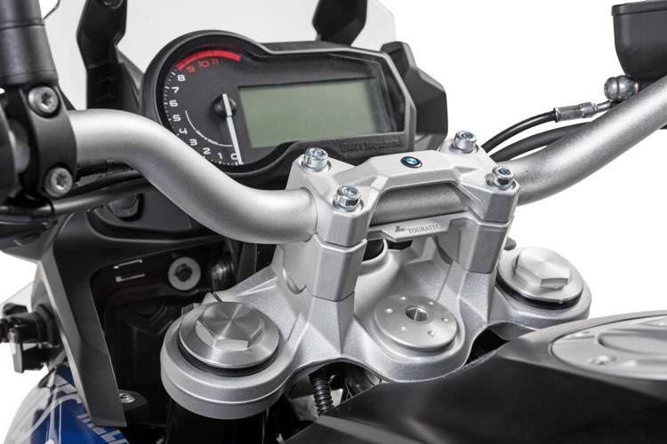 Często to właśnie małe rzeczy robią różnicę! Tak jest w przypadku podwyższenia kierownicy Touratech dla BMW F 850 GS / F 900 XR.Sportowy styl jazdy może często powodować skręcanie się kierownicy na mostku widelca. Zapobiega temu połączenie mocowań kierownicy.Podniesienie kierownicy o 35 mm skutkuje bardziej wyprostowaną, znacznie bardziej zrelaksowaną pozycją siedzącą. Zwiększa się zakres regulacji kąta nachylenia kierownicy, co jeszcze bardziej zwiększa komfort jazdy.Podwyższenie kierownicy Touratech sprawia, że jazda w pozycji stojącej jest mniej męcząca, co jest bardzo korzystne zwłaszcza dla wysokich kierowców.Rezultatem jest odczuwalny wzrost wytrzymałości i koncentracji. Długie odcinki na autostradzie są mniej nerwowe, a nawet szybkie, trudne odcinki off-road są łatwiejsze do pokonania.Łatwy montaż w ciągu kilku minut. Nie potrzeba długich przewodów ani linek hamulcowych!Nie nadaje się do BMW F 750 GS!