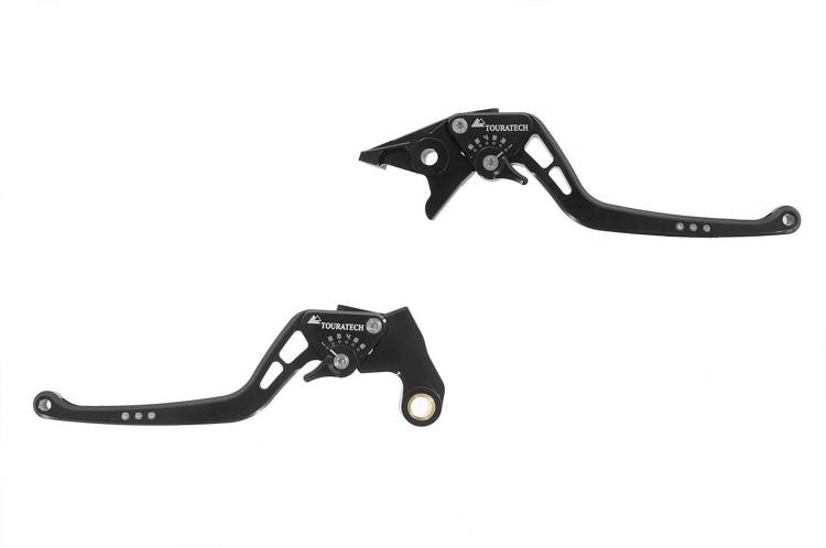 The right response in all situations! The brake and clutch levers from Touratech combine ergonomics and functionality on a high level. Control and manageability are key factors for safety and riding pleasure without stress.- CNC precision lever adjustable in 6 steps- ultra-light, approx. 60 g per lever- high-tech aluminium to aerospace standard EN 2017- perfect design - attractive finish- excellent feel- maximum controllability- can be adjusted while riding- aerodynamic air vents- short and long version in one lever- including interchangeable end pieces & hexalobular internal key- colour black, bright anodised, copy milled excerpts- with ABE (no registration required)