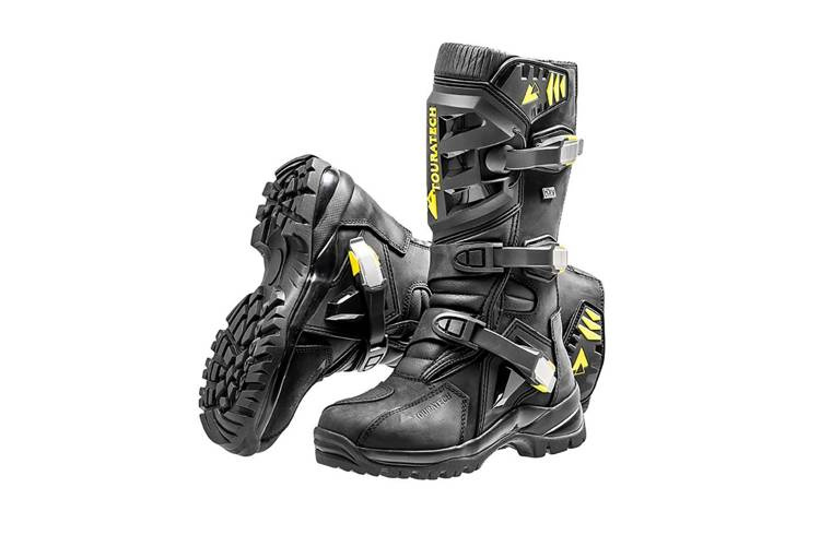Buty motocyklowe Touratech Destino Touring 2 HDry łączą w sobie maksymalny komfort jazdy turystycznej z wytrzymałością sprawdzoną w terenie. Dzięki tej koncepcji są on idealnie dopasowane do różnorodnych wymagań motocyklistów, którzy lubią urozmaicać swoje wyprawy szutrowymi etapami. Dzięki udoskonaleniu skóry za pomocą zaawansowanej technologii laminatu, najnowsza generacja naszych butów ma jeszcze lepszą oddychalność i jednocześnie jest wodoodporna. Skórzany laminat zamiast membrany Najważniejsza innowacja w tym wszechstronnym modelu dotyczy ochrony przed wilgocią. W modelu Destino Touring 2 HDry zastosowano nadający nazwę, szczególnie wysokiej jakości laminat skórzany HDry. Zalety tego rozwiązania są oczywiste. Podczas gdy luźna membrana w konstrukcjach z wyściółką jest zawsze narażona na pewne ruchy między poszczególnymi warstwami i związane z tym działanie sił rozciągających i tarcia, w laminacie skórzanym HDry membrana i materiał zewnętrzny stanowią nierozerwalną całość. Pomiędzy skórę a membranę nie wnika woda, nie ma szwów podatnych na uszkodzenia, a naprężenia materiału są wyraźnie mniejsze. Oprócz znacznie większej wytrzymałości, ten skórzany laminat ulepsza Destino Touring 2 HDry, przede wszystkim dzięki wyraźnie lepszej oddychalności.