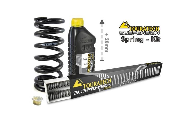 Theseprogressive replacement springs enable theground clearance to be increased by +20mm. The spring rate is designed for sportierresponse and high reserves with heavy loads in combination with the originalspring elements. The springs are perfectly adapted to the original Honda CRF1100L Adventure Sports shockabsorber and fork. After installation, your motorbike will be inexpensively andideally adapted to the demands of off-road motorcycling. Info: Only fits for “HondaCRF1100L Adventure Sports with EERA (2020-2021) ”Including:- “Heavy Load”Replacement springs +20mm for the original fork.- Suitablefork oil.- Paste toreduce friction in the lower fork tubes.- “Heavy Load”Replacement rear spring +20mm for the original shock absorber.- Includesdetailed installation instructions.Assembly info: - Right fork requires tool HP-T85 (01-403-5859-0)- Left fork leg requires tool HP-T01 (01-403-5860-0) Note assembly informationOur recommendation: The conversion of the replacement springs should be made by a specialistworkshop.Do you have any further questions? We will be happy toadvise you personally.E-mail: suspension@suspension.de Phone +49 (0)7728-9279-1555Please use our chassis check sheet and send us the completed form.