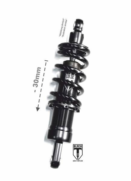 This shock absorber is perfect for reducing the seat height (-30mm) on the INDIAN FTR 1200 / FTR 1200 S. With the Black-T Stage2 shock your Bike stays well-tuned for a leisurely weekend ride with friends or a longer tour, the wide adjustment range allows perfect adjustment of balance and damping. The Stage2 shock absorber can be adjusted for 2-person operation and/or luggage by means of an adjustment tool. This returns your motorbike to the correct riding balance. The rebound adjustment completes the necessary fine-tuning. Black-T High Performance Suspension for every road condition and purpose. No matter whether motorways, federal highways, smallest country roads or fast, ambitious riding style. A lowering with driving dynamics for your INDIAN FTR 1200 / FTR 1200 S. The most important facts:- We recommend having the shock absorber converted and installed by a specialist workshop. - The shock absorber is configured based on our experience for this motorbike and adjusted ready to ride.- Parameters are: Vehicle weight / suspension linkage / structural conditions / test rides.- For all suspension solutions, the rear and front areas of the motorbike should be adjusted.- IMPORTANT: We seriously advise against sliding the fork tubes up in the fork clamp. This has an extremely adverse effect on the motorbike's handling. Please note:To ensure the parked stability of your motorbike after it has been lowered, we recommend using shorter kick stand and/or the centre stand. Technical info:- Black-T shock absorber in gas/oil emulsion design -30mm- Adjustable spring preload with tools- 50 click adjustable rebound damping- Black spring infinitely progressive- 16 mm piston rod- 46 mm piston diameter Scope of delivery: - Ready-to-install Black-T Stage2 shock absorber -30mm- Adjustment tool- ABE documents in preparation (online)- Assembly instruction The basic set-up installed here is designed for riders weighing up to 100 kg plus motorbike clothing. Adjustments for much higher loads or other unusual requirements are possible. The shock absorber will then be individually adapted to your needs.Do you have any further questions? We will be happy to advise you personally.E-mail: suspension@black-t-parts.com Phone +49 (0)7728-9279-1555 Please use our suspension check sheet and send us the completed form.
